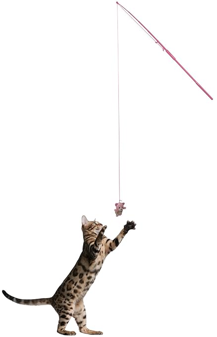 Fishing Pole. The kitty fishing pole is a classic, inexpensive piece of feline exercise equipment. Your cat will love chasing the dangling "bait" at the end of the fishing line while you swish the rod back and forth. Fishing poles are available at pet supply stores, or you can make your own using a rod or dowel, a securely attached string, and a soft toy or feathers.